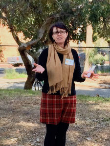 Jo Harris, Chair of the Garden, speaking at the Opening.